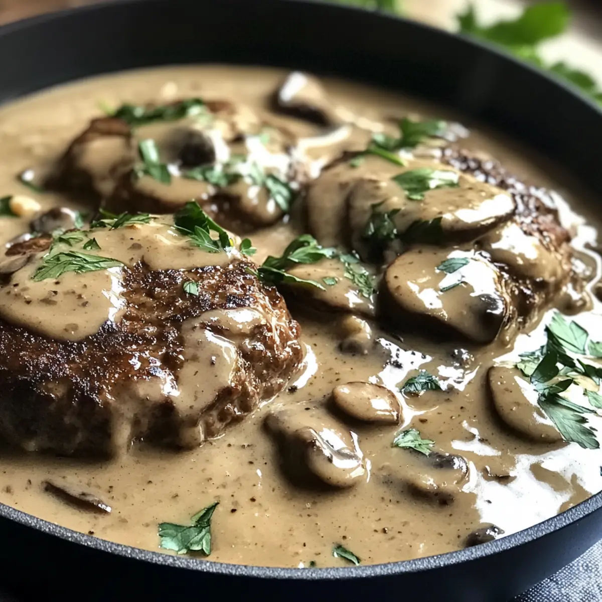 • Creamy Mashed Potatoes: These buttery mashed potatoes soak up the rich mushroom gravy, creating a heavenly bite. Add a sprinkle of chives for a fresh touch!