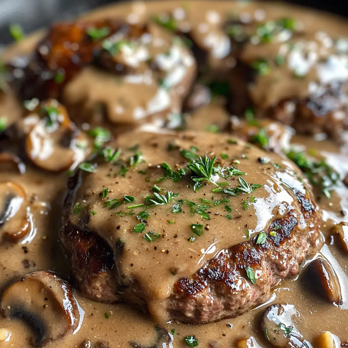 Condensed Cream of Mushroom Soup – Forms a luxurious base for the gravy, ensuring richness; consider using homemade mushroom sauce for a healthier twist.