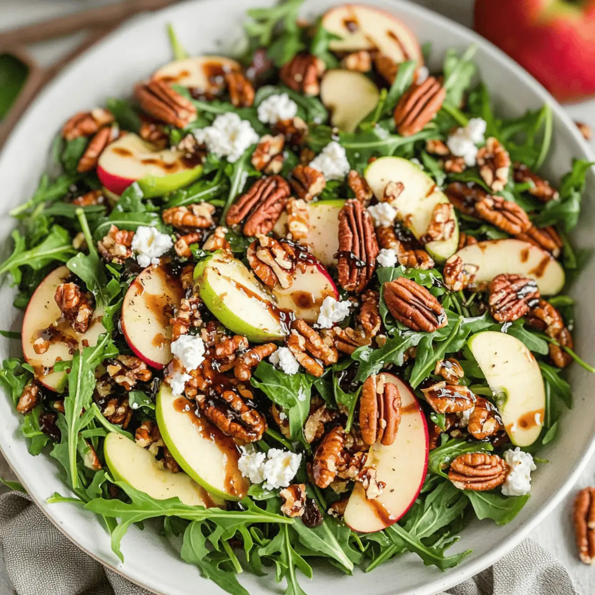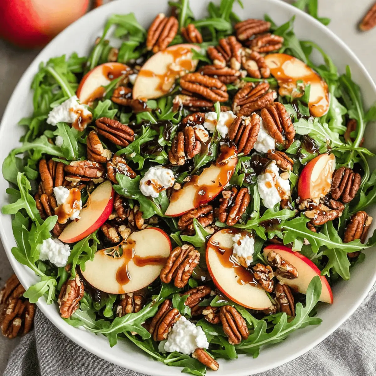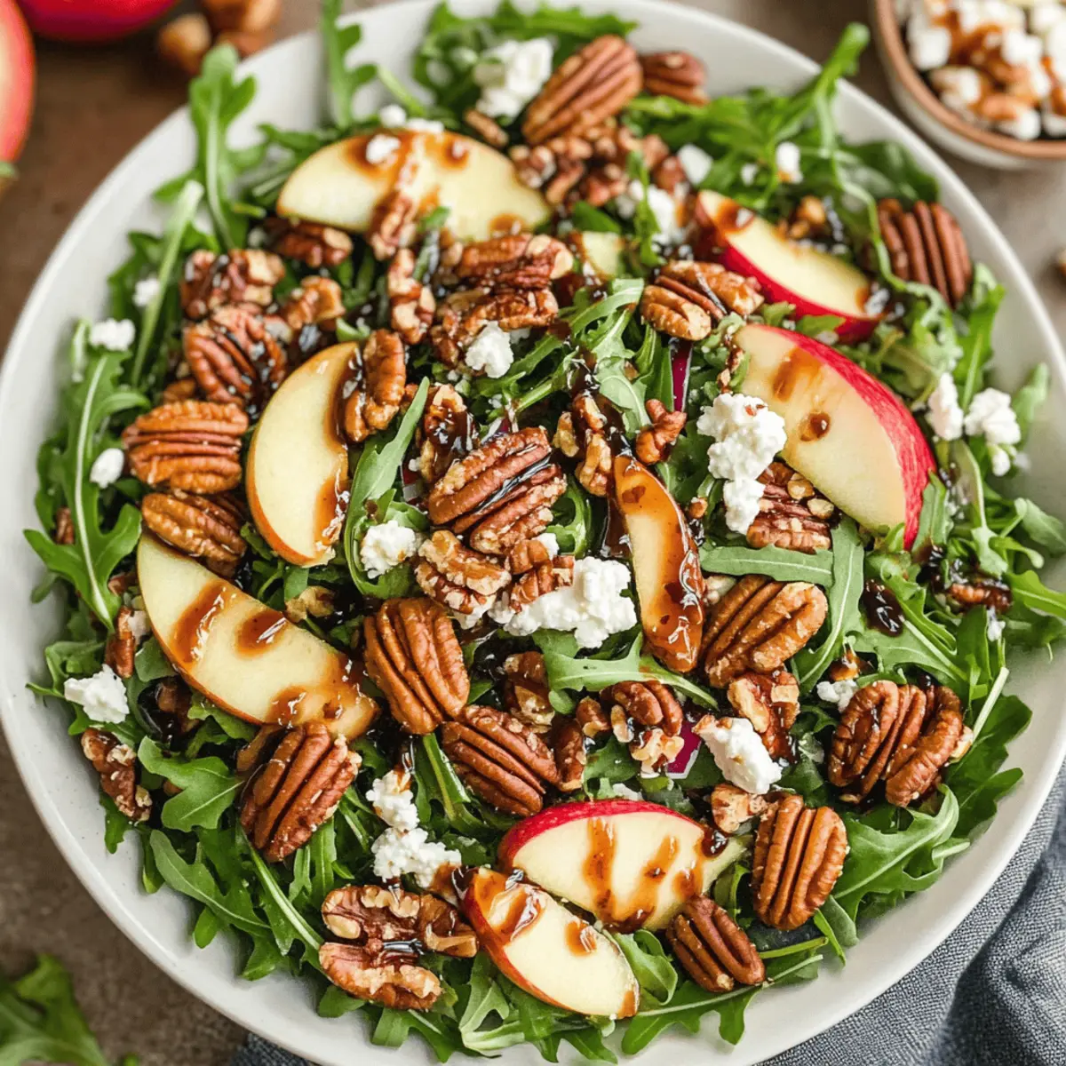 As autumn wraps its colorful arms around us, I often find myself craving fresh, vibrant salads that capture the season’s essence. This Apple Arugula Salad with Maple Pecans is a delightful way to celebrate fall’s bounty, packing a punch of flavor and nutrition in every bite. It’s quick to prepare—taking just 20 minutes—and is gluten-free and vegetarian, making it a perfect addition to your weeknight dinners or festive gatherings. The combination of crisp apples, peppery arugula, and crunchy maple-glazed pecans creates a symphony of textures that’s simply irresistible. Plus, with its creamy goat cheese and tangy balsamic dressing, this salad stands out as a crowd-pleaser that can effortlessly elevate any meal. Ready to make something that brings comfort and joy to your table? Let’s dive into this autumn-inspired recipe!