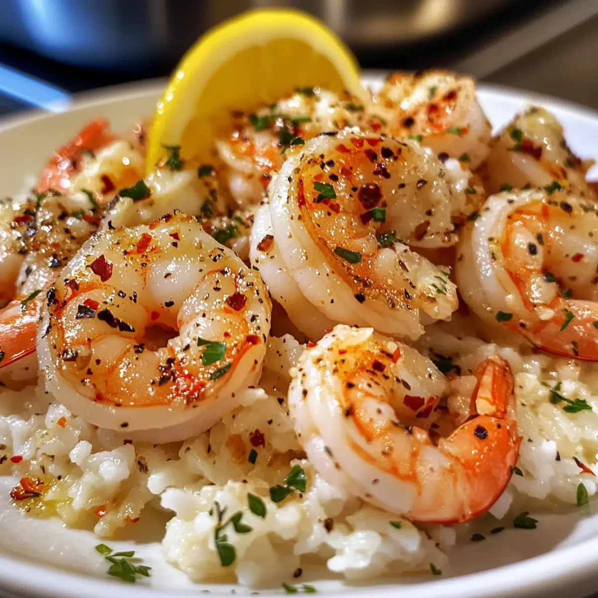 Stir in the juice of half a lemon and a pinch of red pepper flakes if desired. Return the cooked shrimp to the skillet, tossing them in the luscious creamy garlic butter sauce to coat evenly. Heat them through for another minute, allowing all the flavors to meld beautifully.