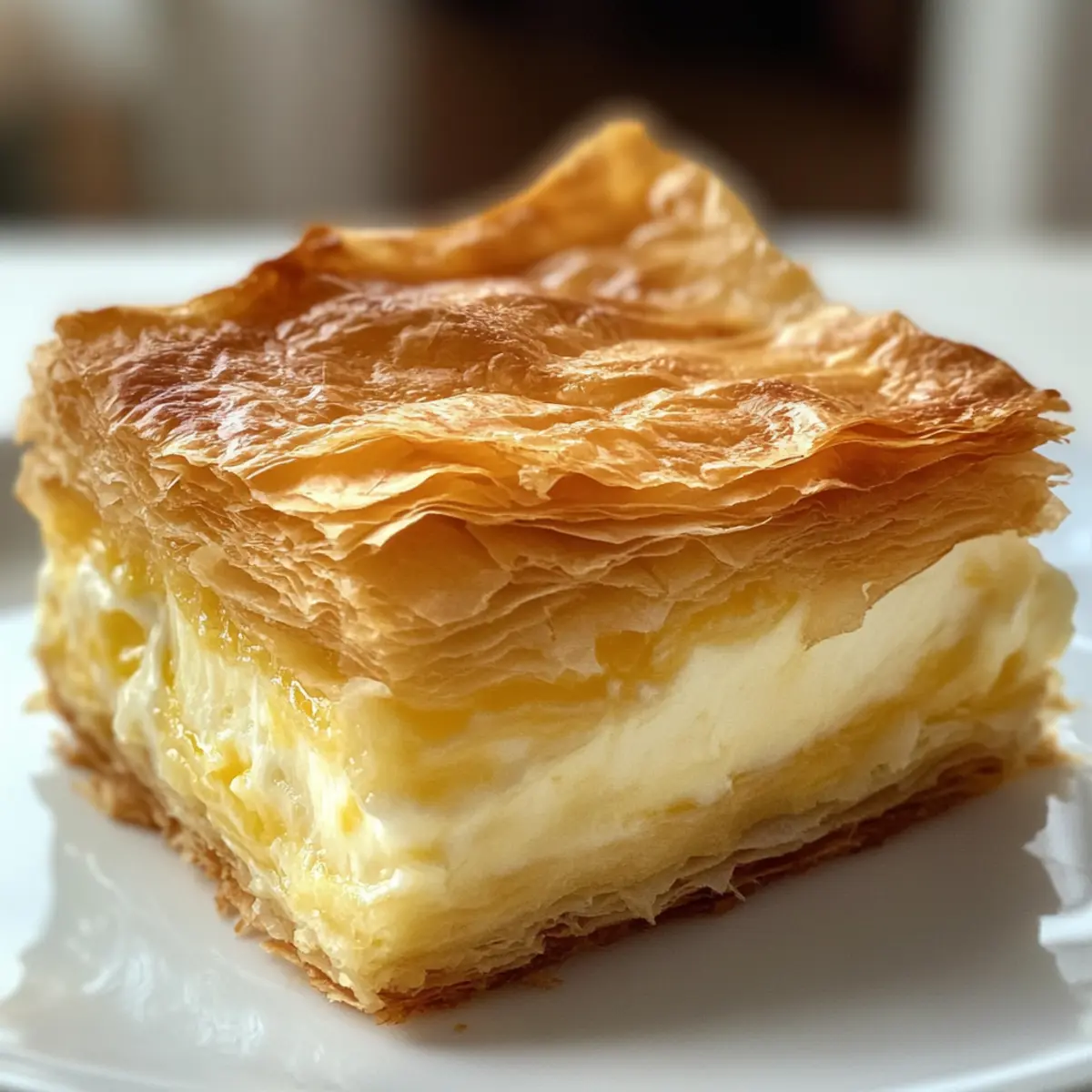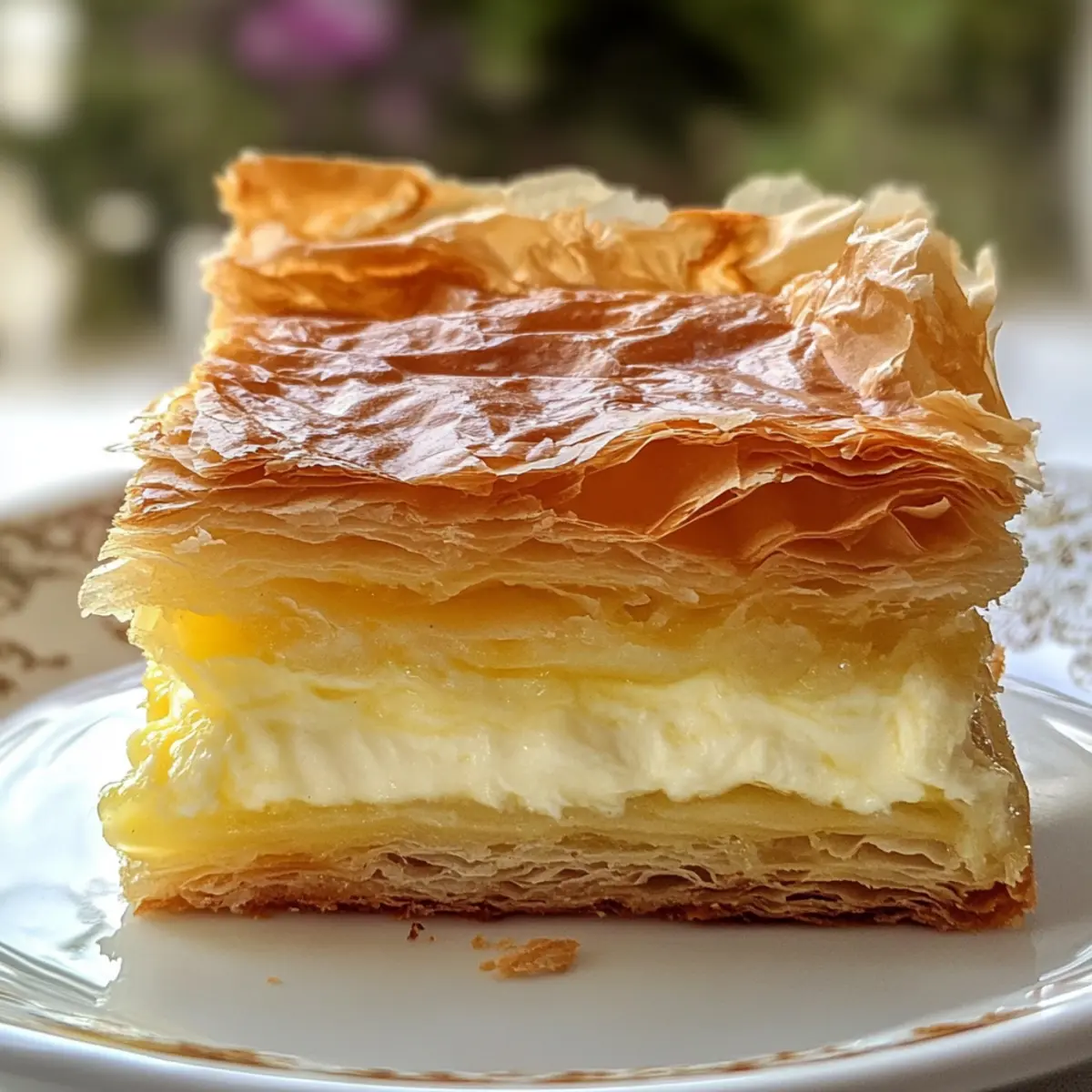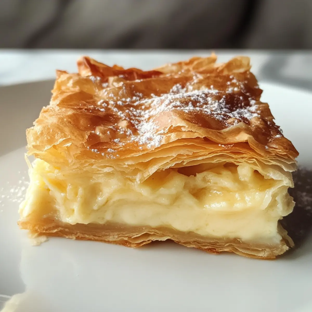 This Crispy Filo Pastry Filled With Warm Custard Cream is a delightful Greek dessert that combines crispy layers of filo with velvety custard.
