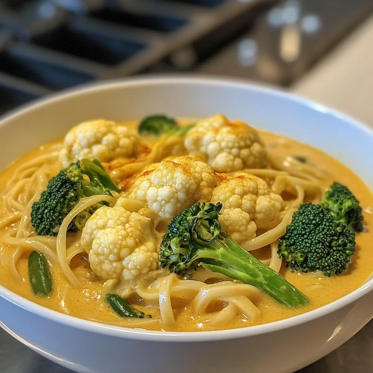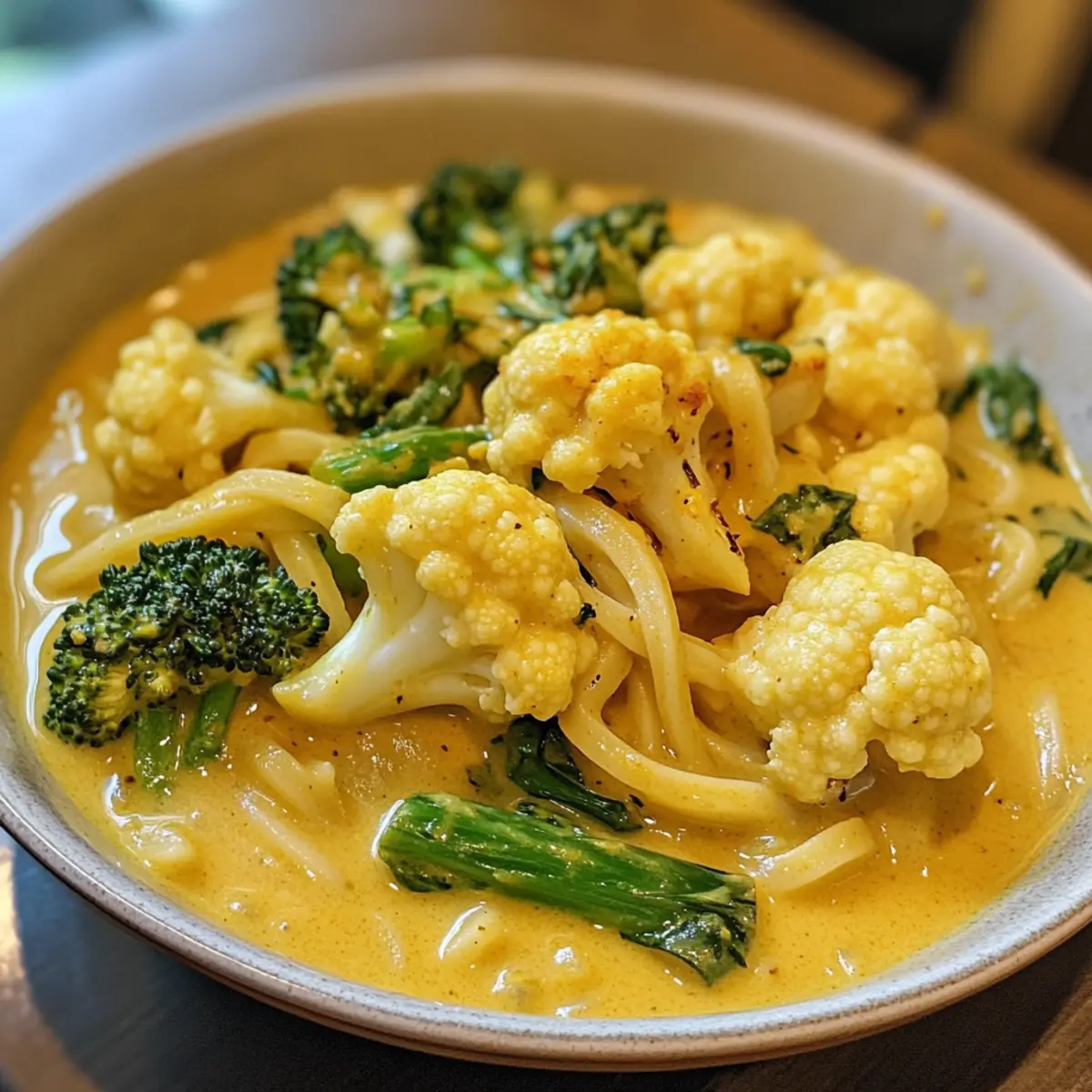 These Curried Cauliflower Noodle Soup preparations are perfect for busy home cooks looking to save time! You can chop your onions, ginger, and cauliflower up to 24 hours in advance, storing them in an airtight container in the refrigerator. The spices can also be pre-measured and stored together to streamline your cooking process. If you choose to prepare the soup entirely ahead, let it cool before refrigerating for up to 3 days. When you’re ready to serve, simply reheat gently on the stove, adding a splash of vegetable stock for a velvety texture. This way, you ensure your soup remains just as delicious and comforting!