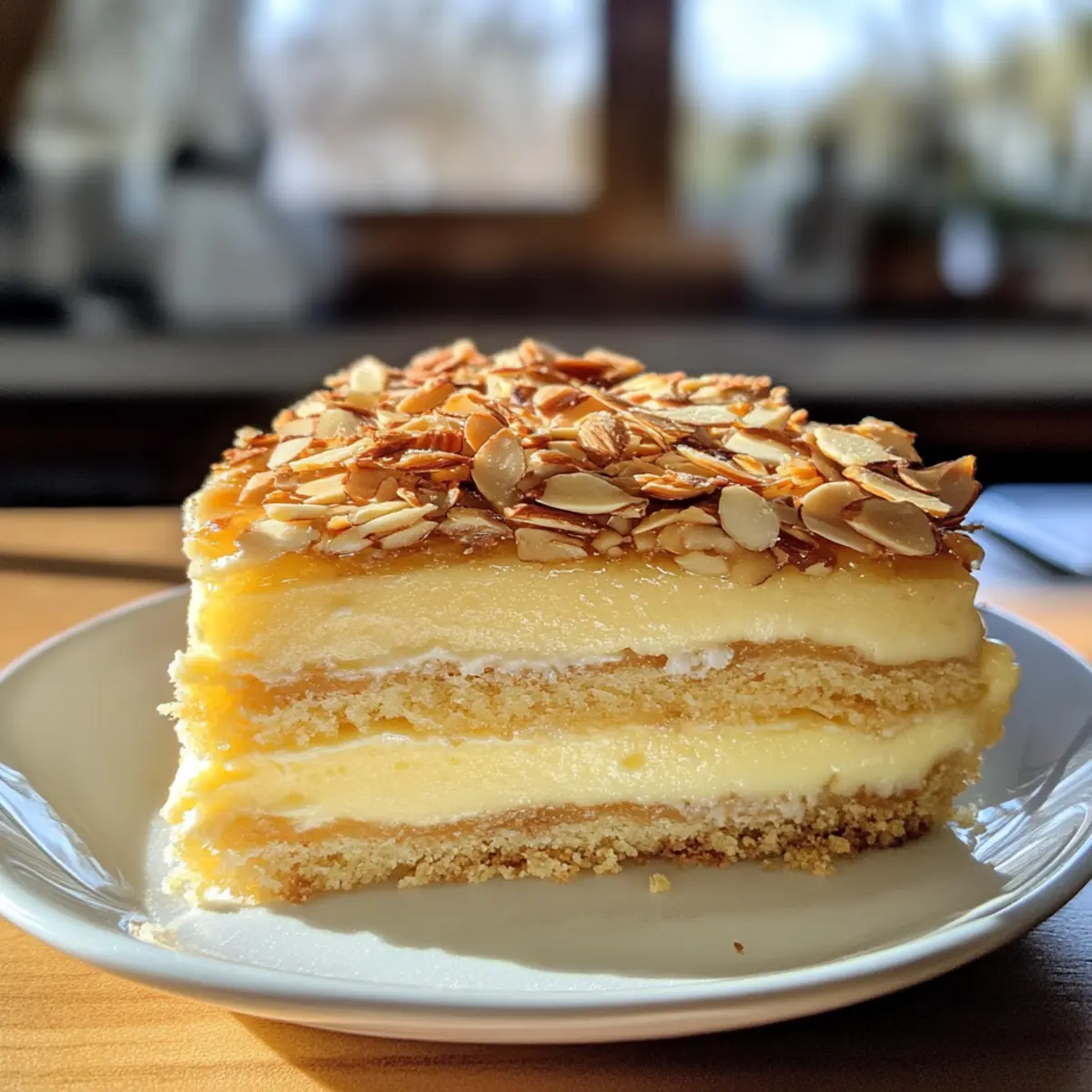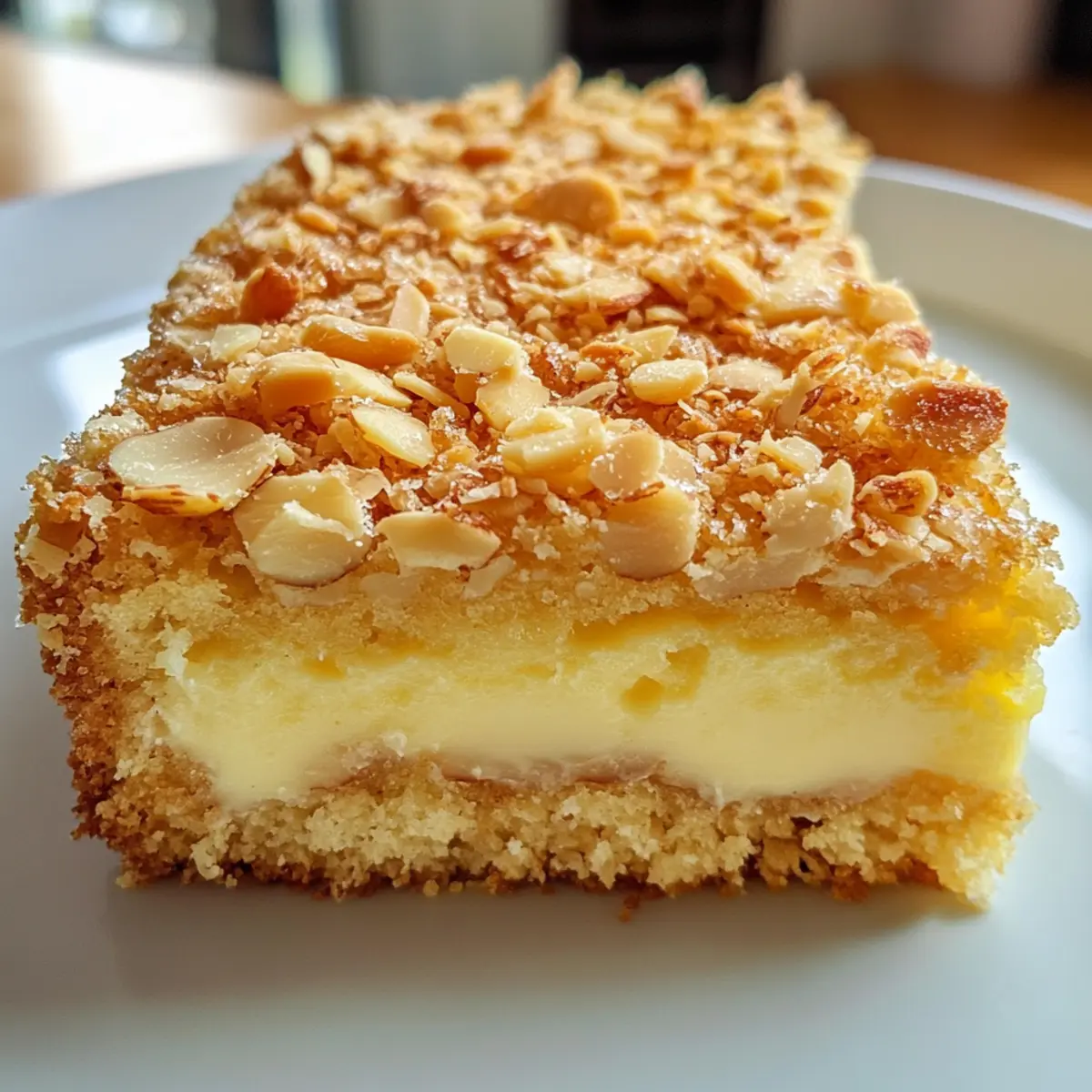 Delicious Dutch Custard Cake with Almond Crunch Layers