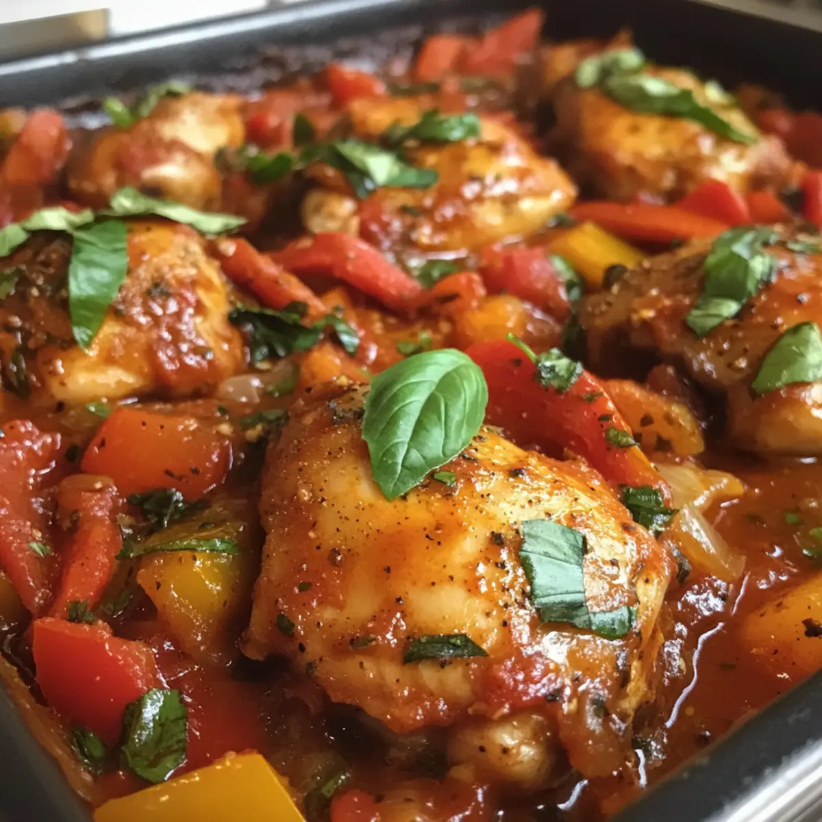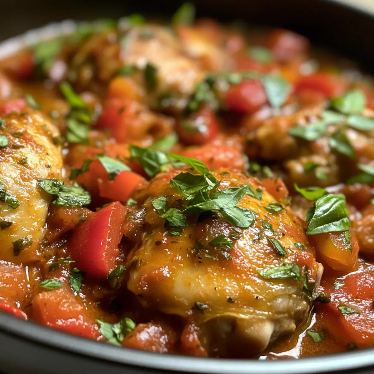 These Easy Chicken Cacciatore options are perfect for busy home cooks looking to streamline their meal planning! You can prep the sauce (without the chicken) up to 3 days in advance by sautéing the vegetables, deglazing with wine, and mixing in the broth, tomatoes, and seasonings. Store it in an airtight container in the refrigerator to maintain freshness. When you’re ready to enjoy, simply reheat the sauce on the stovetop, adding the already seared chicken thighs back into the mix. Simmer until the chicken is heated through, and finish with fresh basil and parsley for a delightful meal that feels like it just came off the stove—only with far less effort!
