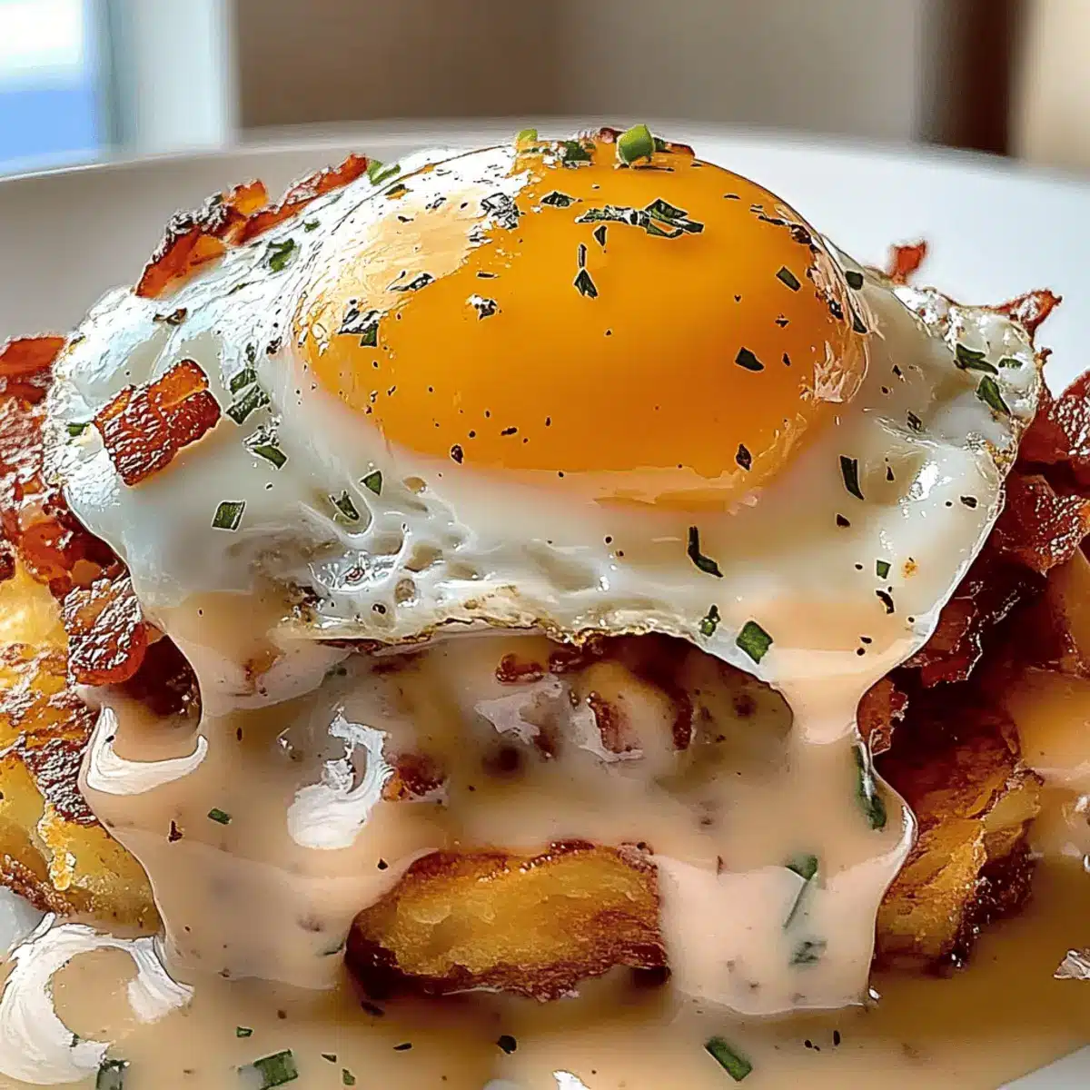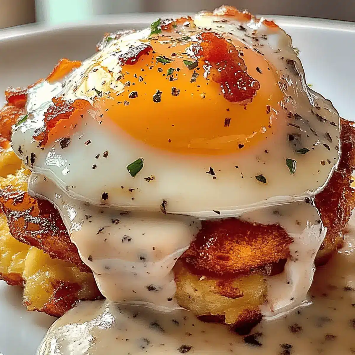 Egg Topped Hash Browns With Bacon Gravy for Cozy Mornings