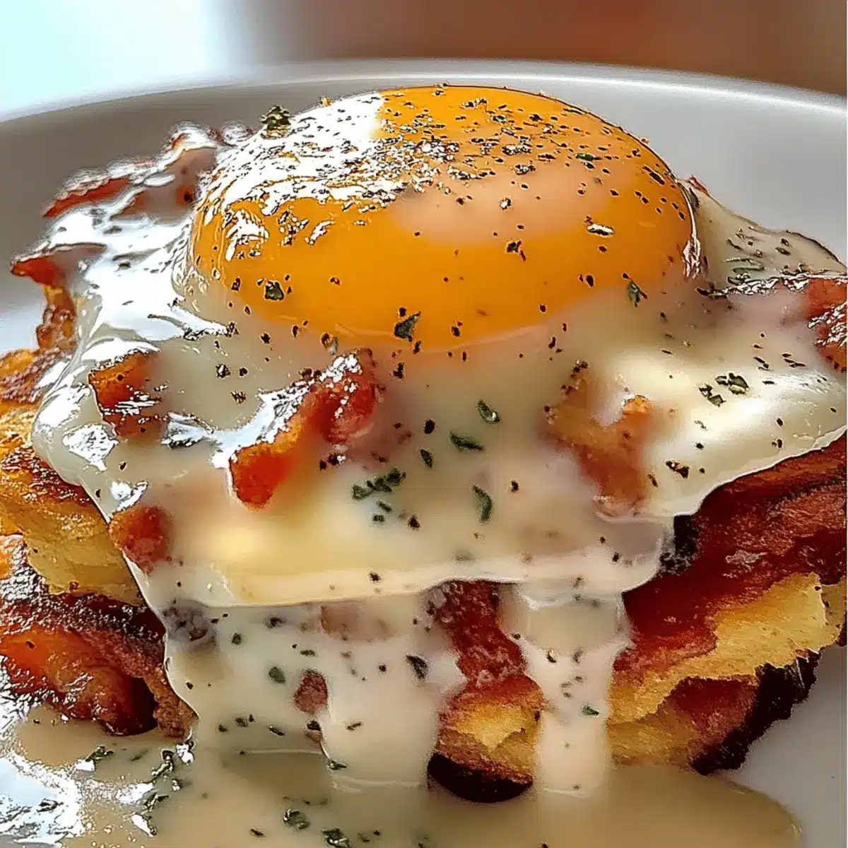 Preparation is key with Egg Topped Hash Browns With Bacon Gravy, especially for busy mornings! You can cook and store the crispy hash browns and bacon gravy up to 3 days in advance. For maximum freshness, refrigerate the hash browns in an airtight container, and warm them in a skillet just before serving. Similarly, store the bacon gravy in a separate container; reheat it over low heat, adding a splash of milk to maintain its creamy consistency. On the day you wish to enjoy this dish, simply fry the eggs fresh, layer the hash browns, drizzle with gravy, and top with an egg for a delightful, restaurant-quality breakfast with minimal effort!