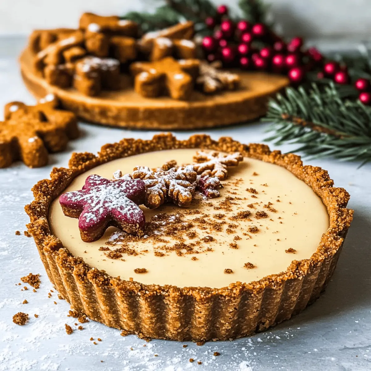 1. Step 1: Prepare the Gingerbread Crust. In a large mixing bowl, sift together all-purpose flour, ground ginger, ground cinnamon, ground allspice, nutmeg, ground cloves, and baking soda. In a separate bowl, cream unsalted butter and brown sugar until fluffy. Mix in molasses and one egg, blending well before combining with the dry ingredients. Chill the dough for at least 2 hours, then roll it out to ¼-inch thickness, press into a pie plate, and bake at 350°F for 15 minutes or until slightly golden.