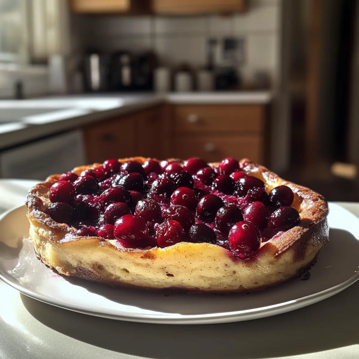 Once blended, carefully pour the batter over the sautéed cranberries in the hot skillet. Ensure the batter evenly covers the cranberries to allow for uniform baking. The contrast of the tart, juicy cranberries against the rich batter will create a delightful flavor once baked.