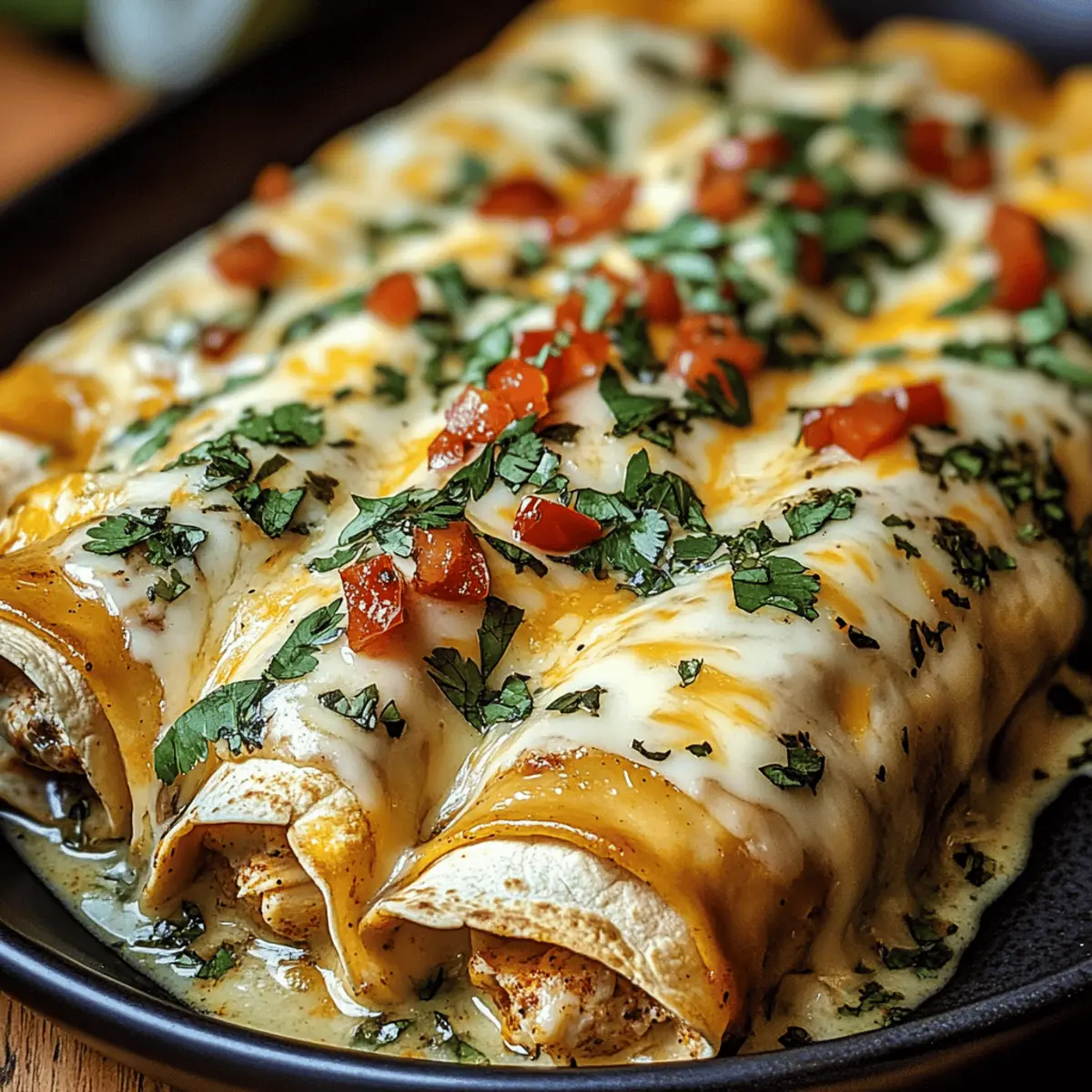 Get ready to experience the delightful fusion in these Green Chile Pepper Jack Chicken Enchiladas!