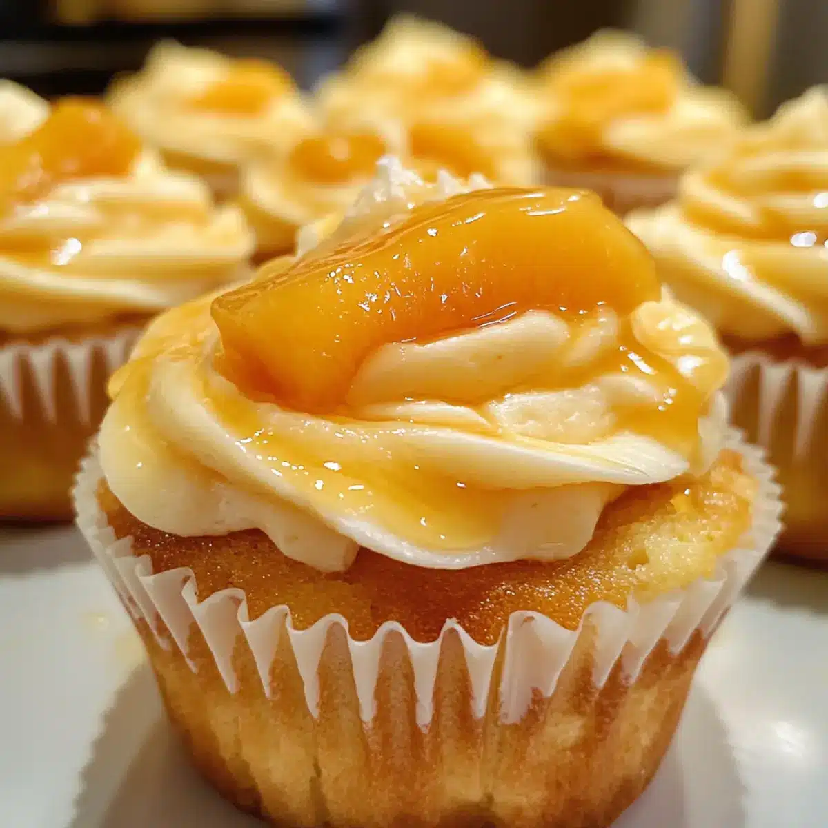 Stunning Presentation: Topped with fresh peach slices and a drizzle of honey, these cupcakes are sure to impress at any gathering, just like my popular Raspberry Cream Pie.