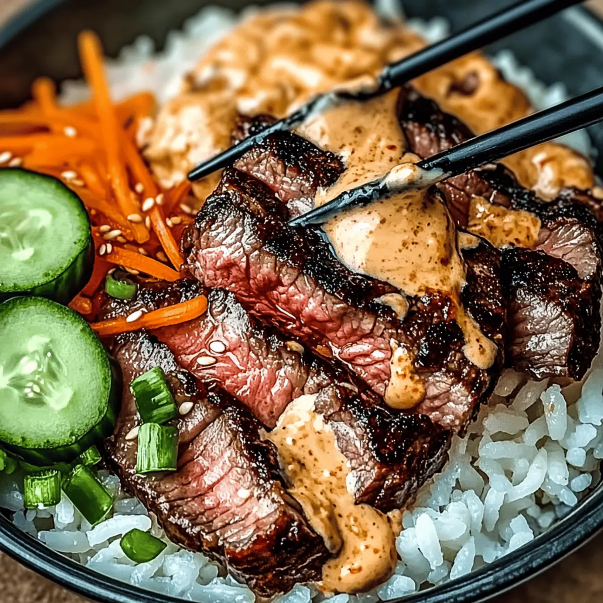 Korean BBQ Steak Rice Bowls with Spicy Cream Sauce Bliss