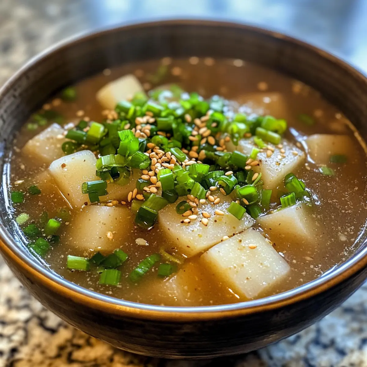 Discover the comforting and nutrient-rich Vegan Korean Radish Soup, blending daikon radish, kombu, and garlic for a deliciously satisfying meal.