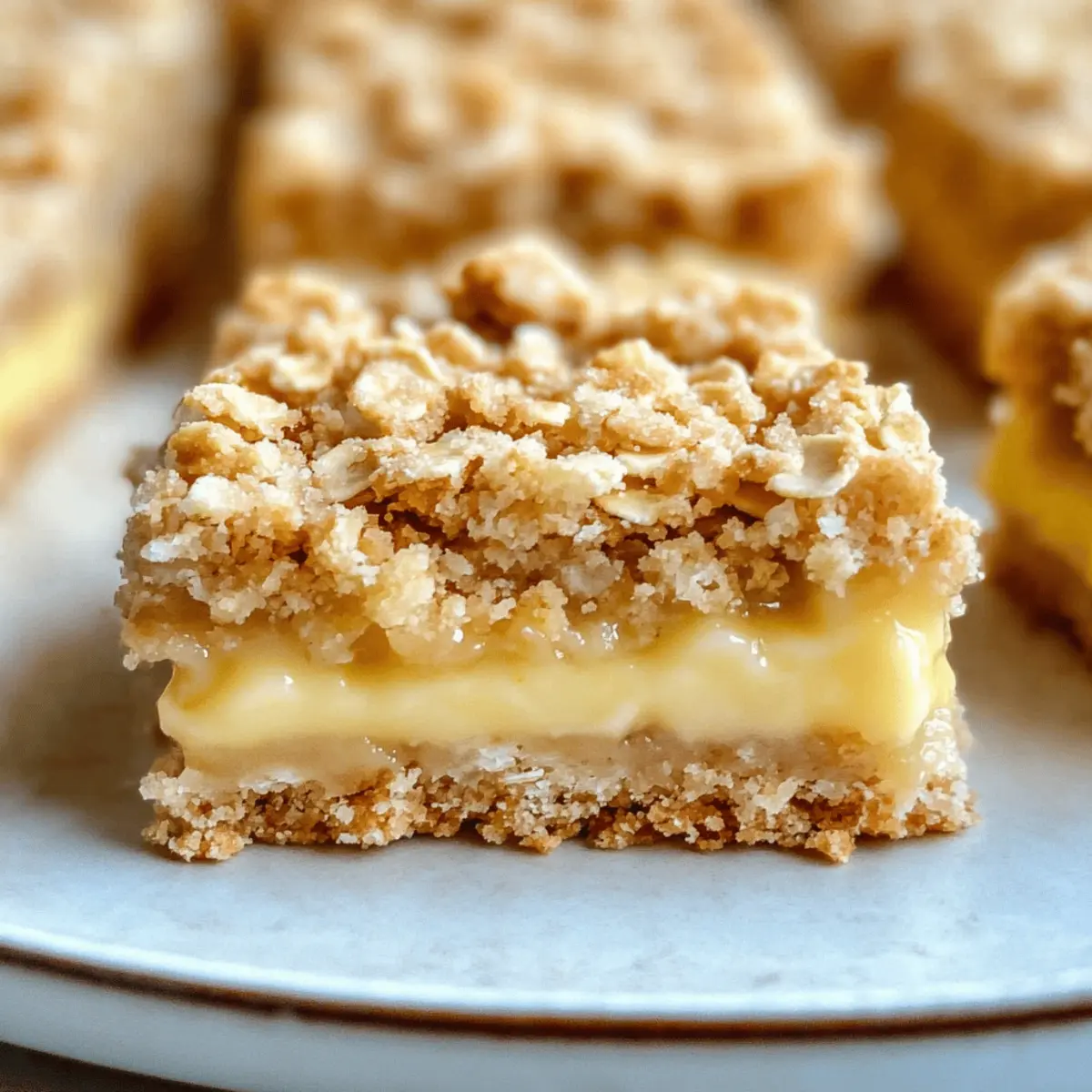 As I sat on my porch, the sun warming my skin and a gentle breeze rustling the leaves, I felt a sudden craving for something sweet yet refreshing. That’s when I decided to whip up a batch of Lemon Oatmeal Crumble Bars. These bars are not just an easy dessert; they’re a celebration of bright flavors and comforting textures that come together effortlessly. With a buttery oatmeal crust holding a creamy lemon filling, each bite offers a delightful contrast between crumbly and smooth. Plus, they make for a perfect treat whenever you need something that shines at a picnic or simply brightens your day. Are you ready to elevate your dessert game with these zesty delights?