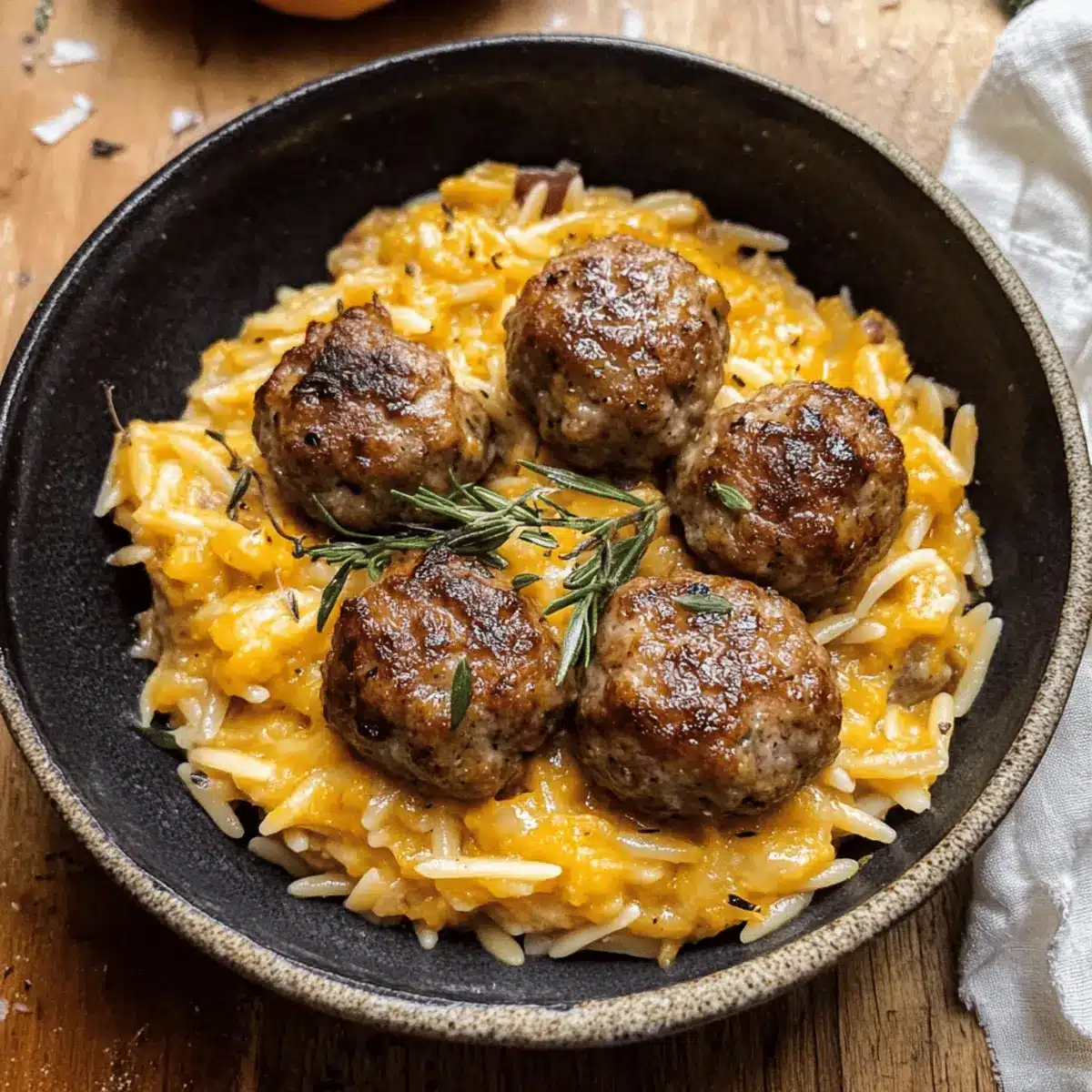 As the leaves turn crisp and the air fills with that familiar fall chill, I find myself yearning for cozy nights spent around the dinner table. That’s when I whip up my Lemon Thyme Meatballs with Pumpkin Orzo. This delightful one-pot meal captures the essence of autumn with juicy, oven-baked meatballs, perfectly paired with creamy, rosemary-infused orzo that sings of seasonal goodness. What I adore about this recipe is how it not only satisfies the soul but also accommodates various dietary preferences—making it a great weeknight dinner for everyone. Plus, it’s a breeze to prepare, leaving you more time to enjoy those treasured moments with loved ones. Are you ready to bring the warm flavors of fall to your kitchen?