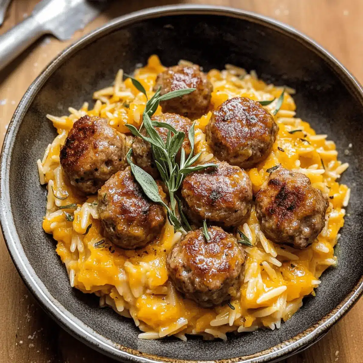 Lemon Thyme Meatballs with Pumpkin Orzo for Cozy Fall Nights