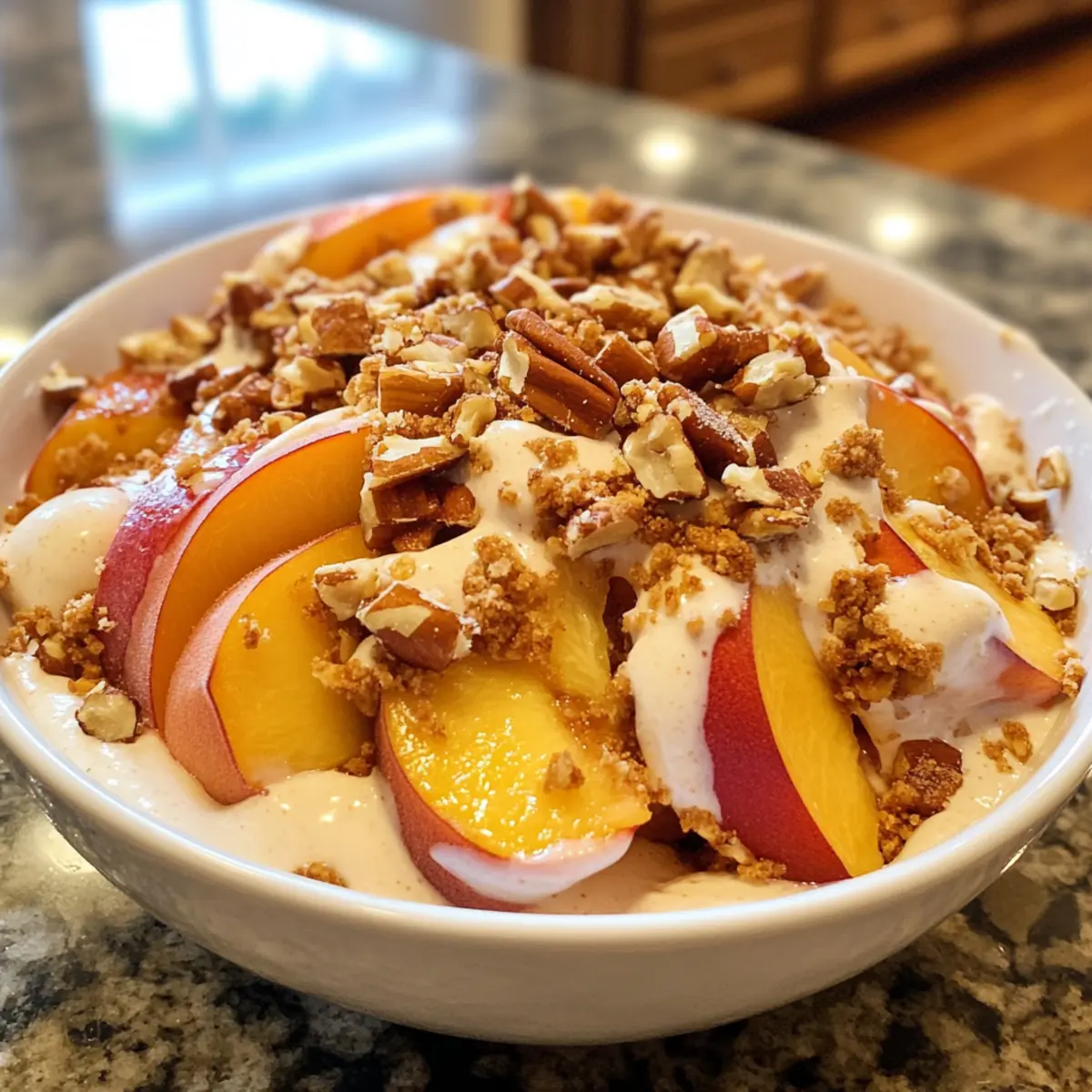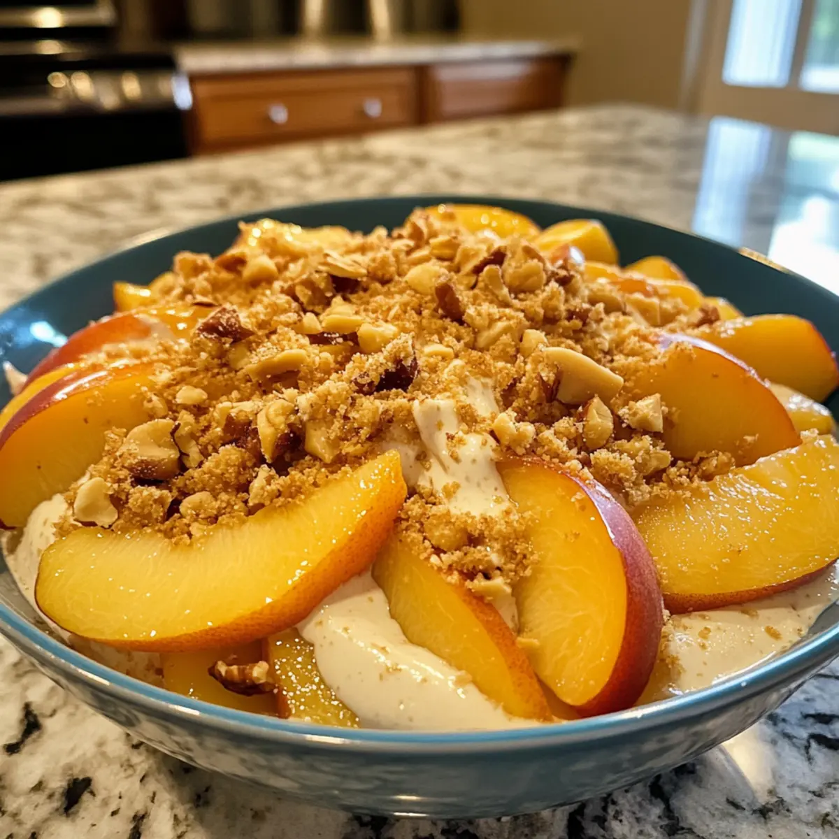 Of course! You can prepare the creamy peach mixture up to 24 hours in advance and store it in the fridge. Just be sure to keep the graham cracker topping separate until you’re ready to serve. When it’s time to enjoy, add the topping for that needed crunch and serve chilled!