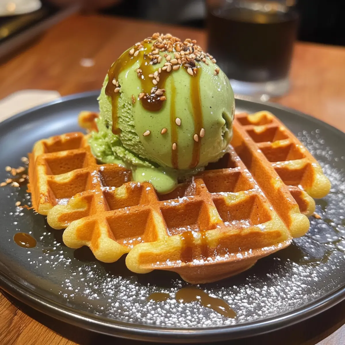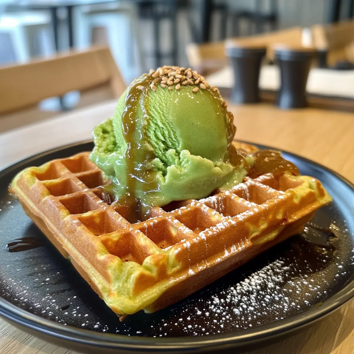 You won’t miss dairy when you indulge in a rich, dairy-free ice cream that melts beautifully on warm Moffles.Flavor Boost: Use flavored mochi like matcha or strawberry to add depth to your waffles.