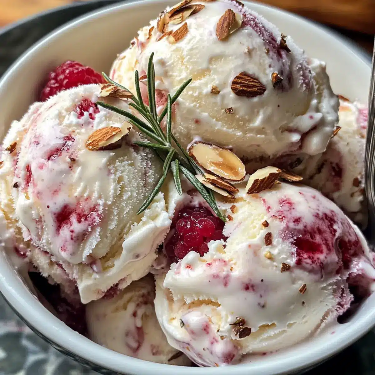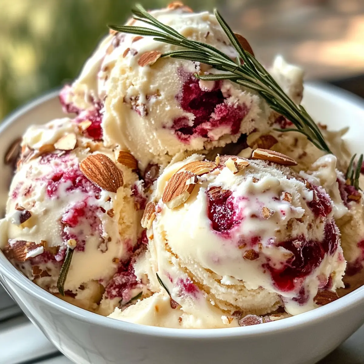 - Create a hole in the center of the ice cream and add ½ cup of raspberry or blackberry jam, ½ cup of lemon curd, ¼ cup of toasted almonds, and 1 teaspoon of chopped fresh rosemary. Re-spin in the Ninja Creami to mix.