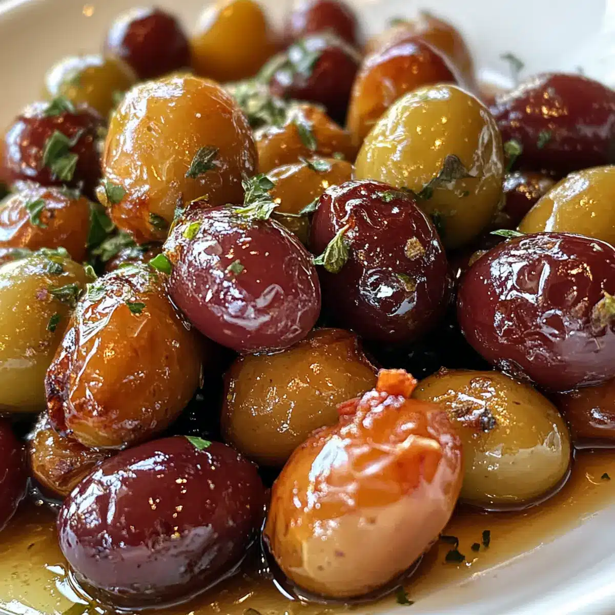 The aroma of roasting grapes and olives wafts through my kitchen, transforming me into a culinary artist on a delightful flavor journey. This simple yet unique appetizer of Roasted Grapes and Olives elevates any gathering with its sweet and savory notes, making it a true crowd-pleaser. In just 25 minutes, you can prepare a dish that not only dazzles your guests but also requires minimal effort—perfect for those weeks when time is of the essence. The succulent, caramelized grapes paired with the briny depth of olives make it an irresistible addition to your charcuterie board or cocktail spread. Are you ready to revolutionize your appetizer game with this easy-to-make delight?
