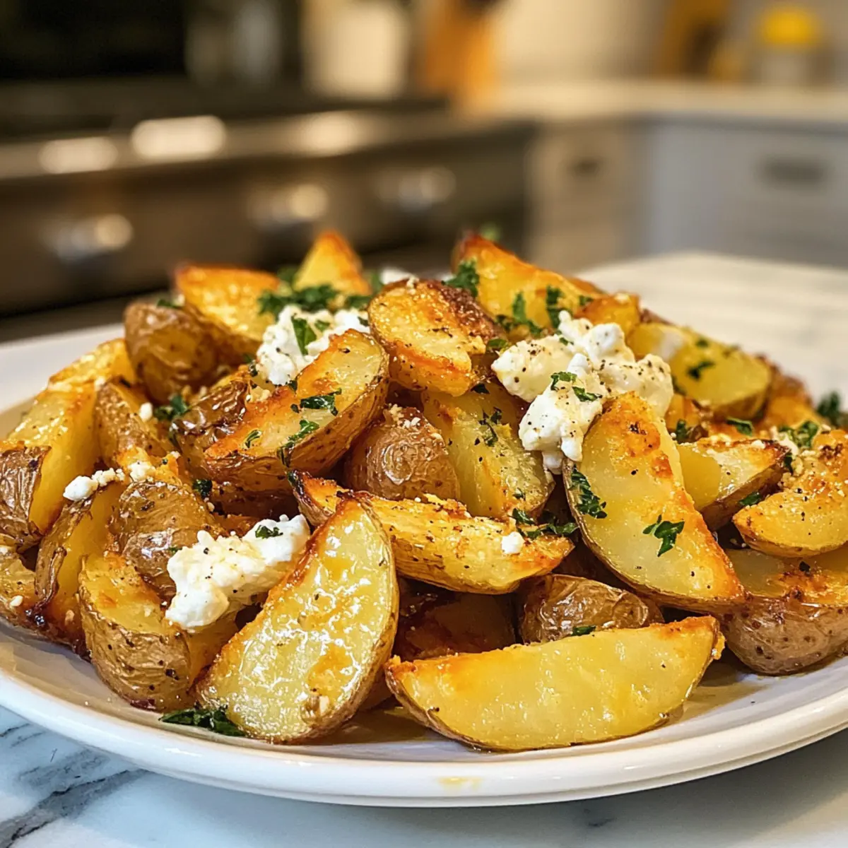 As the oven filled my kitchen with a tempting aroma, I couldn’t help but feel a wave of excitement wash over me. Today, I’m diving into the delicious world of Crispy Roasted Potatoes with Melting Goat Cheese and Lemon Dijon Dressing. This vibrant dish is not only a visually stunning side but also a quick prep that turns ordinary potatoes into a gourmet experience. With just a handful of ingredients, you can create a gluten-free, vegetarian delight that will impress your guests while giving your dinner table a fresh, flavorful lift. The creamy goat cheese melts beautifully over golden, crispy potato wedges, making every bite a blend of comforting texture and tangy zest. Are you ready to elevate your meal game and satisfy your cravings for homemade goodness? Let’s dig into how to make this mouthwatering side dish!