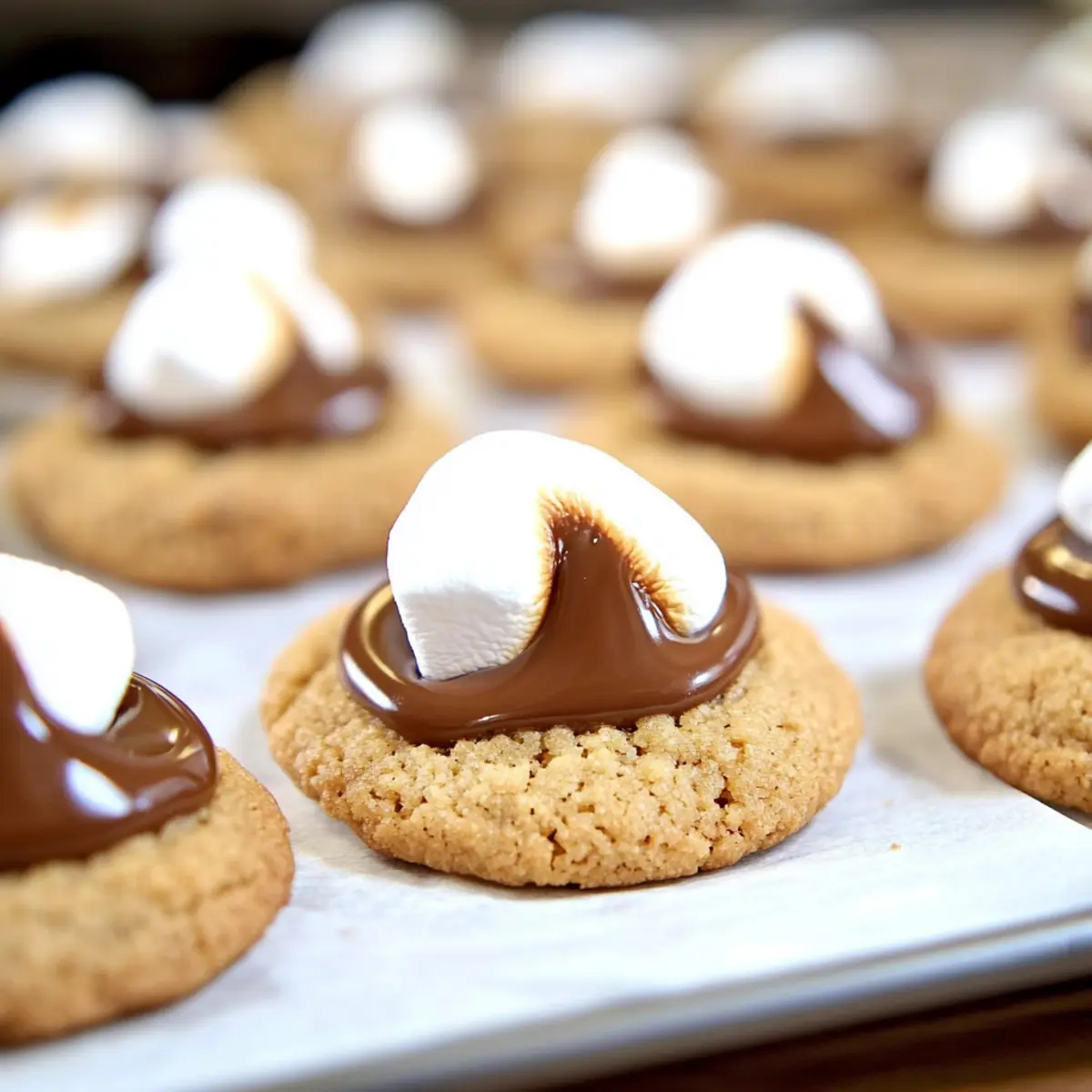 Once cooled slightly, preheat your broiler. Transfer the cookies back to the baking sheet and broil for 30-60 seconds, closely monitoring them until the marshmallows become perfectly golden brown. This step offers that toasted flavor reminiscent of campfire treats!