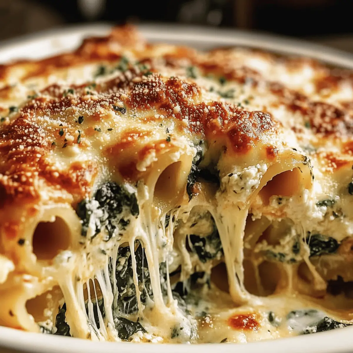These Spinach Ricotta Pasta Bake preparations are perfect for busy home cooks looking to save time during hectic weeknights! You can assemble the entire dish up to 24 hours in advance; simply cover it tightly with plastic wrap and refrigerate. To maintain quality, ensure the spinach is well-drained and avoid overcooking the pasta, as it will continue cooking in the oven. When you’re ready to enjoy your delicious meal, bake straight from the fridge for about 30-35 minutes until bubbly and golden. This streamlined approach allows you to serve a comforting home-cooked favorite with minimal last-minute effort!