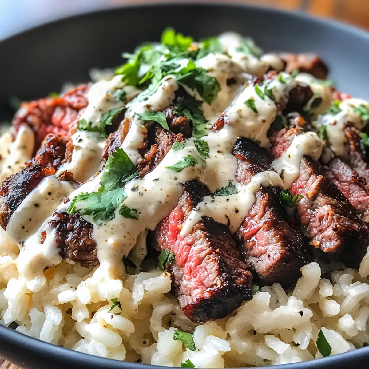 While the rice rests, season 1 pound of sirloin steak strips generously with Montreal steak seasoning. In a separate skillet, heat 1 tablespoon of butter and 1 tablespoon of olive oil over medium-high heat. Cook the steak for about 4-5 minutes per side until it reaches a perfect medium-rare doneness, with a nice brown crust.