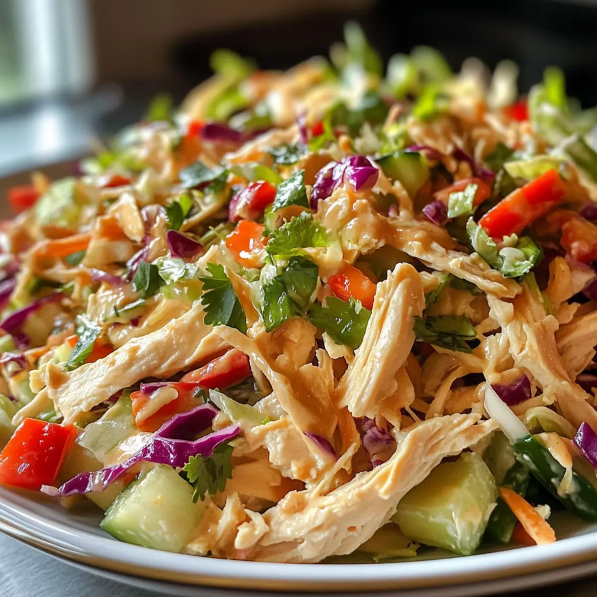 Freshness Tip: Always mix just before serving to keep the vegetables crisp and vibrant in your Thai Chicken Salad with Peanut Dressing!