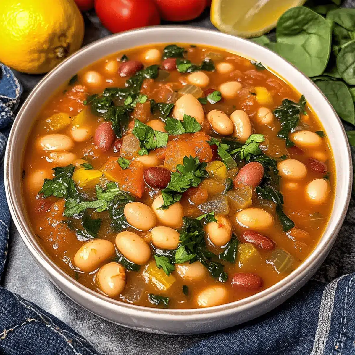Once the spinach has wilted, taste your Three Bean Soup, adjusting with more lemon juice or spices if needed. Serve hot with extra lemon wedges on the side and a slice of crusty bread for mopping. This hearty soup is not only satisfying but makes for a wonderful, cozy meal perfect for sharing!