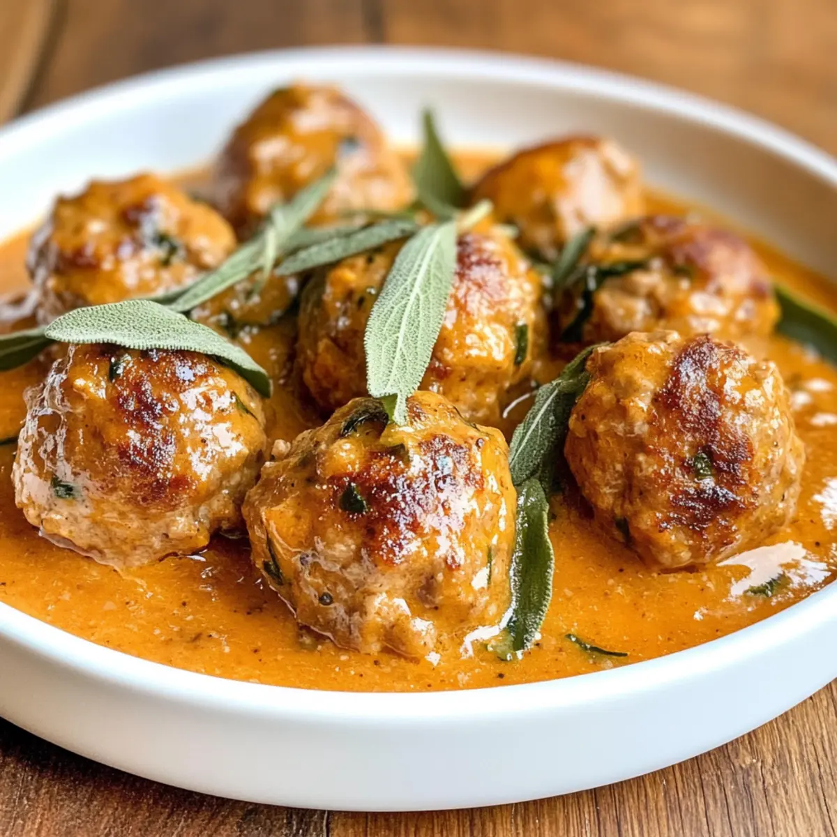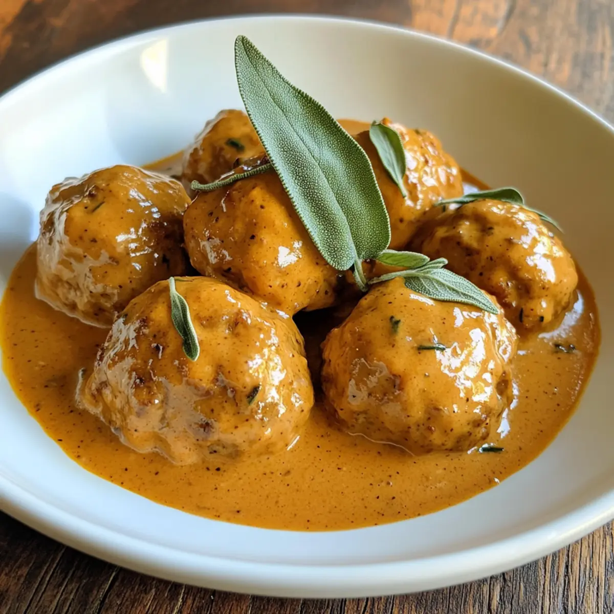 Savory Turkey Meatballs in Creamy Pumpkin Sage Sauce