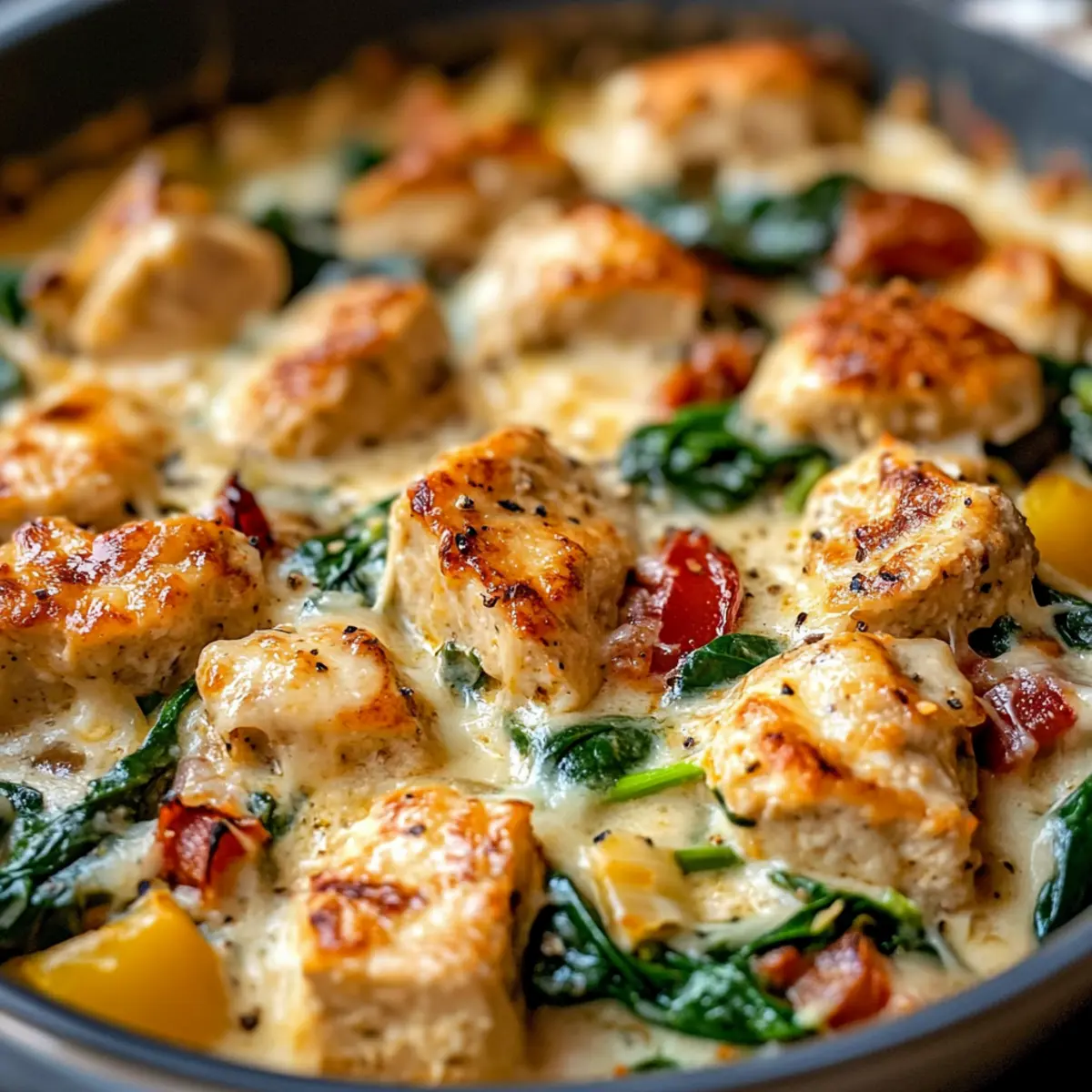 As I tossed a handful of vibrant, fresh vegetables into a sizzling skillet, the vivid colors danced like a painter’s palette, inspiring me to create something truly special. This Creamy Skillet Tuscan Chicken is a delightful twist on comfort food that captivates not just the senses but your soul as well. Perfectly nourishing yet low in carbs, it’s an ideal option for anyone seeking a fulfilling meal without the guilt. With just a quick sear and simple ingredients, you’ll have a warm dish that comforts like a cozy hug. Are you ready to unleash your inner chef and transform your weeknight dinners? Let’s dive in!