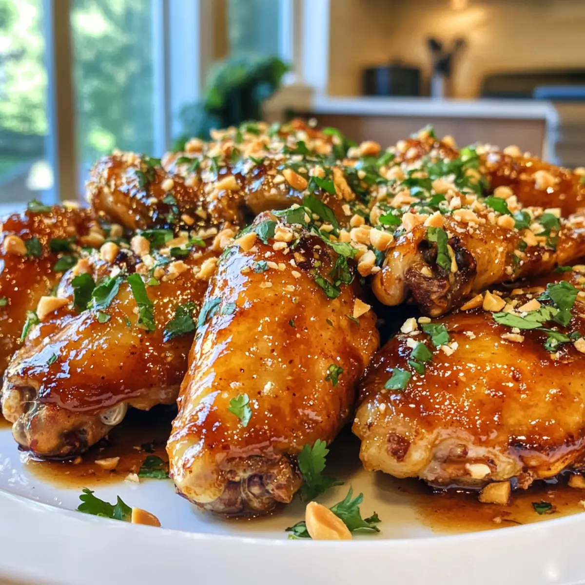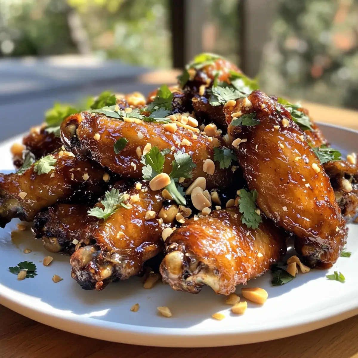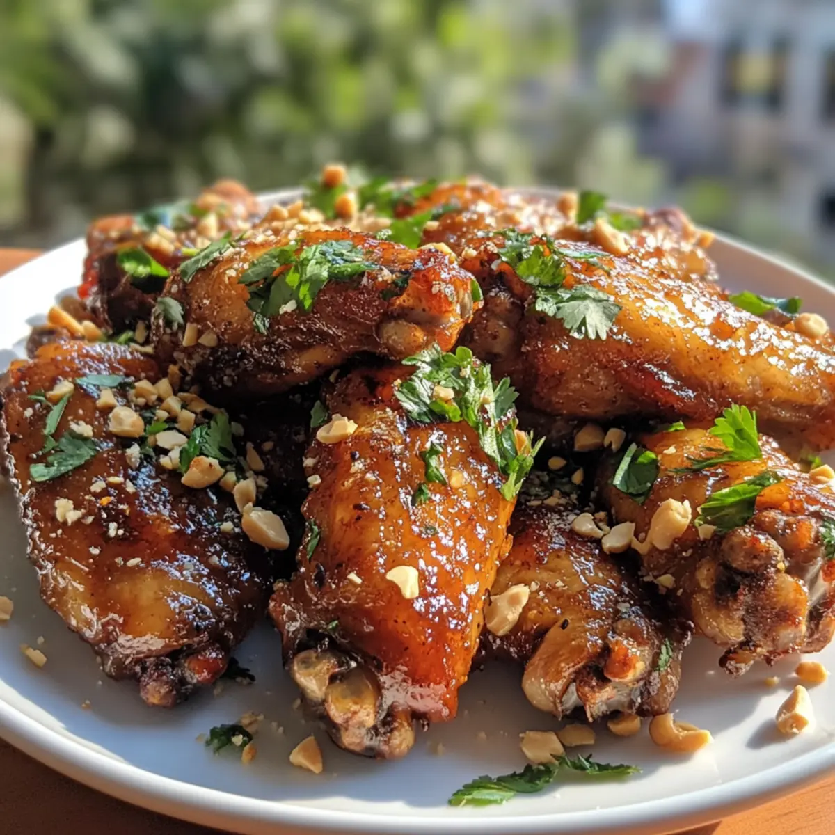 - Transfer the wings to a serving dish. Baste again with sauce and sprinkle with chopped peanuts and cilantro before serving.